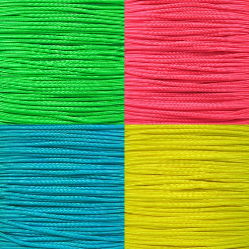 275 Paracord in Neon Colors is one of our stiffer paracord types. It packs 5 inner strands into a 2mm sheath. If 550 cord is too thick or bulky, use 275 cord. It has a sufficient strength rating for many outdoor applications such as camping clotheslines, fishing stringers, or hiking trail markers. Because of its smaller size, it can easily be packed into a survival kit. Other great uses include kid’s bracelets and lanyards. 275 cord is also known as: Tether cord, dummy cord, utility cord, accessory cord, tactical cord, or half 550 cord.