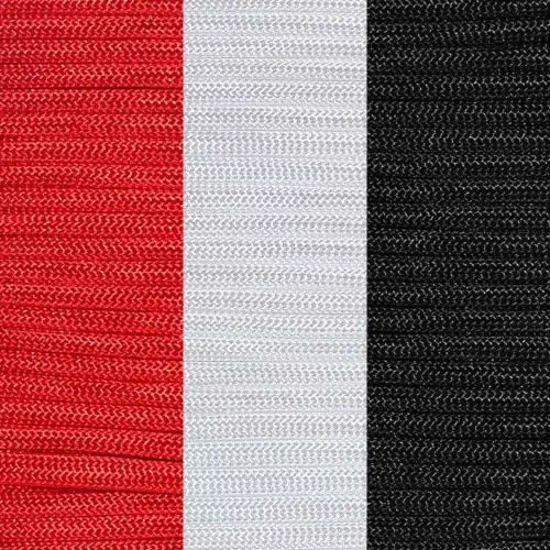 This kit contains 100 feet of the following USA made, 550 paracord colors: Black, Imperial Red, & White