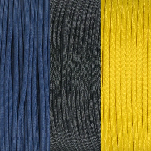 This kit contains 100 feet of the following USA made, 550 paracord colors: F.S Navy Blue, F.S Yellow, White