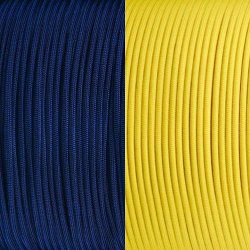 This kit contains 100 feet of the following USA made, 550 paracord colors: Midnight Blue & Yellow