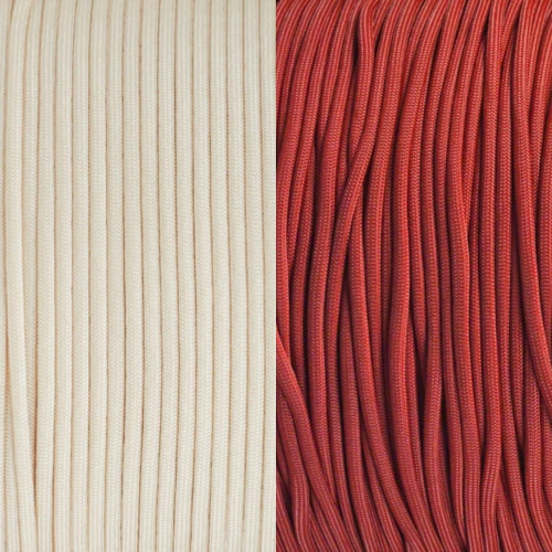 This kit contains 100 feet of the following USA made, 550 paracord colors: Crimson & Cream