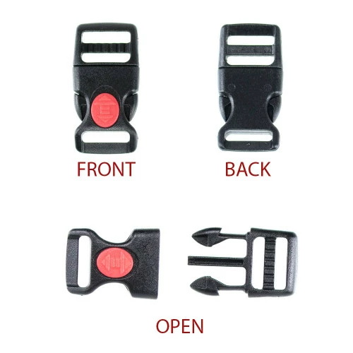 | Locking buckles are great for making your paracord projects secure. This 5/8 in. size is ideal for small pet collar or gear with a 1/2 in. to 5/8 in. webbing.
