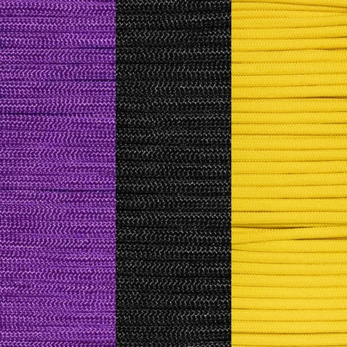 This kit contains 100 feet of the following USA made, 550 paracord colors: Acid Purple, Black, & FS Yellow