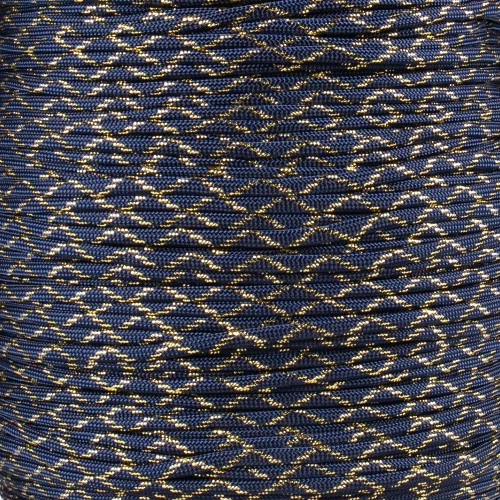 Spools of Midnight Blue with Gold Metallic X – 550 Paracord is the most used, dependable, tough and long lasting cord we offer. It can be used for countless projects and perfect for crafting, repairing and other paracord projects.