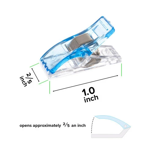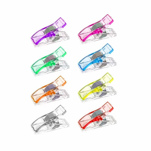 Sewing fabric together can be difficult when it comes to making even and seamless stitching with clothes, curtains, and other pieces of cloth. These Sewing Clips and be used to make sewing easier. There are different colors included to help with color coding or other purposes. Bottom parts of the clip are clear with the color being at the top. Colors of the clips are green, orange, yellow, purple, red, light pink, dark pink, blue, and clear.
