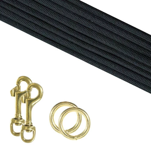 This leash kit comes with enough paracord to make a 7 ft. leash. Use the included snap clips to loop either end of the leash into a convenient handle.