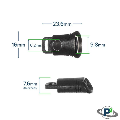These Single Hole Cyberian Cord Locks – Black are a great addition to any project. Their “pull to loosen, pull to tighten” technology is great for tethered cord lock applications. Just pull your cord to tighten and then pull the webbing attached to flair slot to loosen.