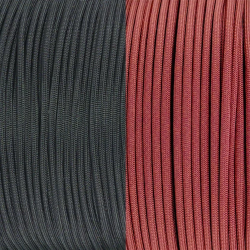 This kit contains 100 feet of the following USA made, 550 paracord colors: Black & Garnet