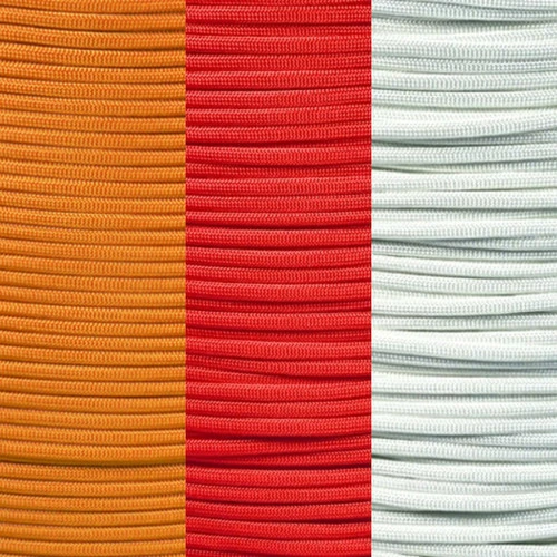 This kit contains 100 feet of the following USA made, 550 paracord colors: Goldenrod, Imperial Red, & White
