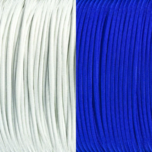 This kit contains 100 feet of the following USA made, 550 paracord colors: Electric Blue, White