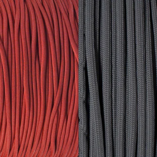This kit contains 100 feet of the following USA made, 550 paracord colors: Crimson & Gunmetal